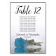 Elegantes Türkis Blue Rose Seating Chart Hochzeit Tischnummer