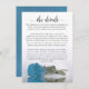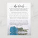 Diese wunderschöne Hochzeitszimmerkarte ist so konzipiert, dass Sie mehr Platz für alle Informationen haben, die Ihre Gäste benötigen, wie z.B. Website, Registrierung, Empfang, Reise, Unterkunft oder andere Details. Die Karte zeichnet sich durch ein wunderschönes Design aus, mit einem Single, der himmelblau, türkis oder azurfarben Rose reflektiert, und einem laktierenden Schriftzeichen, der "die Details" liest. Die Rückseite ist in einer lila Farbe aus Marmor gehalten.
