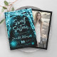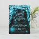 Elegante 16 . Geburtstag Birthday Party Einladungsvorlage mit türkisfarbenem Sparkle String Lights Motiv, benutzerdefiniertes Foto und modernes Typografie-Skript.