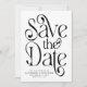 Elegante, typografische Hochzeitskarte Save the Date Foto. Design zeigt Typografie-Skript in klassischer schwarzer Schrift auf einem weißen Hintergrund ''Save the Date'', Namen, Datum und Hochzeitsort auf der Vorderseite. Personalisieren Sie Ihr Foto in trendigem, abgerundetem Rahmen und fügen Sie die Hochzeitswebsite hinzu.