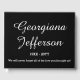 Dieses elegante und schlichte Gästebuchdesign kann genutzt werden, um bei seiner Beerdigung oder Gedenkfeier die Erinnerungen eines kürzlich verstorbenen Individuums aufzuzeichnen. Es enthält einen personalisierten Namen, Geburt/Tod Jahre und eine liebevolle Botschaft.