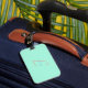 Modernes und stilvolles Gepäckanhänger-Design mit pastellfarbenem Hintergrund und Ihren Initialen.