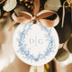 Klassische viktorianische Gastgeschenk Hochzeit-Tags mit zartem, staubblauen Wappen in Aquarellblau und elegantem Monogramm. Das weiche botanische Design umrahmt die Initialen des Paares wunderschön und schafft einen zeitlosen und raffinierten Look.