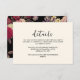 Eine schöne, blumengeschmückte Gästekarte mit romantischen Rot-, Rot-, Rosa- und Blume auf einem dramatischen schwarzen Hintergrund. Die Vorderseite ist cremefarben mit hübscher Schrift-Typografie.