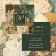 Eine quadratische Visitenkarte mit wunderschönen weichen rosa Blume aus einem Vintagen holländischen Ölgemälde. Das elegante Monogramm ist in Pastellrot auf einem grünen Quadrat mit einem Rand dekoriert.