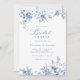Elegante Vintage Blütendusche der Marine Blue Bridal Einladung