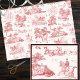 Subtile und gedämpfte monochrome, weiche rote Toile de jouy Muster mit Landschaft mit Bäumen und pastoralen Szenen mit eleganten Fahrern auf Pferd und Jagd Hunden. Dieses klassische Design erinnert an traditionelle ländliche Eleganz und wird alle Reitfreunde ansprechen. Die neutralen, beruhigenden Farbtöne vereinen sich mit der Vielfalt der Innenräume und schaffen zeitlose Eleganz.