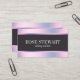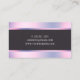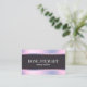 Modernes Visitenkartendesign mit holografischer metallischer Textur, dunklem lila Streifen und elegantem Kalligraphie-Schriftart.