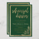 Einfaches elegantes Waldgrün und Gold verfügen über ein handgemaltes Blumendesign mit handgeschriebener Goldtypografie. Dieses glänzende Hochzeitsfest Probe Dinner Einladung ist der perfekte Ausdruck für jede Braut und Bräutigam Hochzeitsveranstaltung. Passen Sie dieses Design mit Ihren Details und Monogramm Initial an.