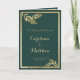 Elegantes modernes Waldgrün und goldenes Blatt Hochzeitsprogramm. Diese schicke Einladung zur Hochzeit ist perfekt für jedes elegante und raffinierte Glam-Mädchen. Dieses Design eignet sich ideal für ein trendiges und stilvolles Party. Entwerfen Sie Ihre eigenen Nachrichten und Informationen. Alle Designs sind gedruckt.