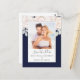 Dieses Design ist mit einem minimalistisch-blumengeschmückten Botanischen Stil, einem rosafarbenen Rosa-Blume-Bouquet, einem botanischen Grünpflanzen-Blätterwerk, einer stilvollen Kalligraphie-Schrift, einem Foto-Paar-Template, einer verlobten Verlobung-Anordnung, einem vereinfachenden, eleganten klassischen Design, einer preiswerten Postkartenvorlage, minimaler Kalligraphie-Typografie, einem einfachen navy-Foto Save the Date