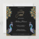 Mit seinen hellen Federn und dem prächtigen Absturz verkörpert dieser elegante Pfau Stärke und Selbstvertrauen mit dem perfekten Gleichgewicht von zarter und dennoch auffallender Komposition. Das stilvolle und elegante Pfau lädt Sie zum Neujahrsfest ein. Freuen Sie sich auf das Party! Vollständig anpassbar! Originelle Handbemalung in Aquarell.
