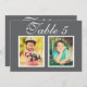 Elegante und einzigartige Tischnummer-Karten für Hochzeiten zeigen Fotos der Braut und des Bräutigams aus der Kindheit in einem Zeitalter, das mit der Tischnummer übereinstimmt. Zum Anpassen: Geben Sie in die Tischnummer ein, klicken Sie auf "Ändern", um Ihre eigenen digitalen oder gescannten Fotos hochzuladen, und fügen Sie diese individuelle Tischnummer-Karte in Ihren Warenkorb ein. Wiederholen Sie die Schritte für alle Tischnummern, die Sie benötigen. Weißes Skript benutzerdefinierter Text auf einer dunkelkohlegrauen (kann angepasst werden) Hintergrundfarbe.