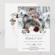 Diese elegante Weihnachts-Hochzeitseinladung eignet sich perfekt für eine rustikale Landhaushochzeit. Das Design ist mit wunderschönen, weiß und bordeauxfarbenen Blumen mit Kiefer, Heilige Beere und Eukalyptusgrün gestaltet. Dies ist ein perfektes Farbschema für eine Winterhochzeit. Machen Sie sich diese Einladung zu eigen, indem Sie Ihre Foto-Namen und alle Ihre Hochzeitsdetails eingeben. Verwenden Sie das erweiterte Entwurfswerkzeug, um diese Vorlage weiter anzupassen.