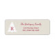 Elegante Rücksendeadressen-Aufkleber mit modernem, weißem geometrischem Baum mit bordeauxrotem Monogramm auf beigem Hintergrund mit Imitaten mit Leinwand-Textur. Personalisieren Sie es, indem Sie Ihren Anfangsnamen und Ihre Adresse in der Sidebar hinzufügen. Der benutzerdefinierte Text wird in einer passenden, tiefroten Farbe mit dem Namen in einem Skript-Schriftart angezeigt. Um das Design White Trees on Beige Weihnachtsmuster auf anderen Gegenständen zu sehen, klicken Sie auf den Link "Rocklawn Arts" unten. Digitales Bild. Copyright ©Claire E. Skinner. Alle Rechte vorbehalten.
