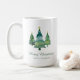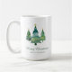 Diese elegante Weihnachtskaffee-Tasse mit drei sanft bemalten Aquarellbäumen verleiht dieser Foto ein Gefühl der Ruhe und des saisonalen Charmes. Die Vorderseite ist mit "Frohe Weihnachten" in anmutigen Drehbüchern geschmückt und fügt dem Design eine Touch von Eleganz hinzu.