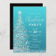 Elegantes Weihnachtsbaum Party Silberner Aquamarin Einladung