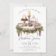 Die Einladung zum Weihnachtsessen bietet einen eleganten Rahmen für ein Abendessen in einem grünen Garten mit dem Sprichwort "eat, drink & be merry". Die Einladung ist einfach und elegant, mit weißem Hintergrund und schwarzem Text.