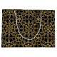 Diese klassische Geschenktasche ist ideal für festliche Geschenke und Winterfeiern. Es zeichnet sich durch ein verziertes geometrisches Muster aus, mit miteinander verbundenen Formen der Blume, herzenförmigen Blüten und dekorativen Schneeflocken. Dieses Vintage inspirierte, traditionelle Design fügt jedem Geschenk eine Touch Eleganz hinzu! Bedruckte Farben: Schwarz und ein Imitat goldene Textur. Erhältlich mit matt oder glänzend Oberfläche.