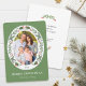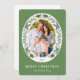 Die Weihnachtskarte ist mit einem ovalen Foto-Rahmen versehen, der mit Wintergrün und roten Beeren auf hellgrünem Hintergrund verziert ist. Personalisieren Sie diese moderne, elegante Urlaubskarte, indem Sie Ihr Foto, Ihren Familiennamen und Ihre eigene Nachricht hinzufügen, oder benutzen Sie die Nachricht.