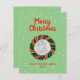 Elegante Weihnachtskranz Grün Custom Foto Holiday Card. Laden Sie Ihr eigenes Bild in den runden Kranz hoch. Elegantes Design mit Ihrem Bild. Schöne Grußkarte mit personalisiertem Namen und Datum. Handgezeichnetes Gründesign mit roten Beeren, Schleifen und Schneeflocken. Optional direkt von Zazzle an Freunde und Familie mit Ihrer Adressliste senden. Grüner oder benutzerdefinierter Farbhintergrund.
