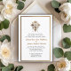 Mit diesem eleganten White mit Gold Trim Wedding Einladung können Sie Ihren besonderen Tag mit edler Anmut und spiritueller Schönheit verkünden. Im Zentrum dieses zeitlosen Designs steht ein verziertes, dekoratives Kreuz, das an handgeschnitztes Holz erinnert, das mit aufwändigen Blumenverzierungen geschmückt ist. Der weiße Hintergrund, gepaart mit luxuriösen Goldakzenten, schafft eine romantische und heilige Atmosphäre - perfekt für traditionelle und religiös inspirierte Hochzeiten. Diese individuell gestaltbare Einladung ist ideal für Paare, die eine sinnvolle und elegante Art und Weise suchen, ihre Liebe zu teilen. Das Blumenkreuz symbolisiert Liebe, Einheit und göttliche Gnade und macht es zu mehr als einem schönen Design - es ist ein Spiegelbild Ihres Engagements. Ob als eigenständiges Werk oder als Teil einer kompletten Hochzeitssuite, diese Einladung bietet eine klassische und dennoch unverwechselbare Einführung in Ihre Hochzeitsfeier.