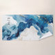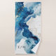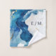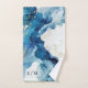 Moderne, weiße Badetücher in blauer Aquarellfarbe mit weißem Staub und goldfarbenem Farbtupfer (das Gold ist ein digitaler Effekt, keine echte Folie).