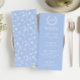 Genießen Sie den Charme Ihres Hochzeitsempfanges mit diesen eleganten, blau-weißen Blumenkarten. Mit zartem Blumenmuster dekoriert und mit einem zeitlosen Blumenkranz geschmückt mit dem Monogramm der Braut und des Bräutigams.