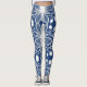 Elegantes, weißes Blumenmuster-Muster auf Deep Blu Leggings