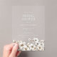 Dieses elegante Brautparty mit blühenden Akrylen lädt zu Blume im Herbst und Winter ein. Kleiner Hintergrund mit weißem Text und weißen Hochzeitsblumen. Der Hintergrund größerer weißer Blumen ist optional. Alle Texte, einschließlich der Namen, können geändert werden.