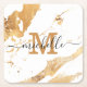 Eleganter Untersetzer aus weißem Marmor mit handgeschriebenem Monogram-Quadrat