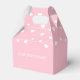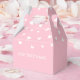 Weiße Herzmuster auf pastellrosa Hintergrund. Benutzerdefinierte Gastgeschenk-Felder. Text bearbeiten, um ihn anzupassen. Ideal für die personalisierte Dekoration des Party.