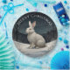 Ein elegantes weißes Kaninchen in einer weihnachtlich schneebedeckten Waldlandschaft.