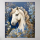Elegantes weißes Pony und vergiss-Me-Nots Poster
