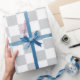 Hellgraues und weißes Quadrat-Muster. Maßgeschneiderte Geschenkpapier-Rollen.