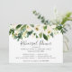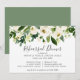 Elegante, blühende, horizontale Probe-Dinner-Einladung mit einem Top-Rand mit handgemalten Aquarellrosen und Grünpflanzen und den Worten "Probe Dinner" in einem schönen handgeschriebenen Drehbuch. Die Rückseite ist solide grün und kann in jede gewünschte Farbe geändert werden. Das Design auf diesen Einladungen erlaubt es Ihnen, die Details für zwei Orte hinzuzufügen, perfekt für eine Probe, wo das Abendessen in einem separaten Ort abgehalten wird.