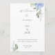 Das elegante, blaue Hydrangea-Hochzeitsprogramm mit einer schönen Blumenarchitektur, eine Begrüßungsbotschaft für die Gäste, Ihre Namen, das Datum und die bearbeitbaren Programmdetails am Ende. Das Design ist ein Set mit weißem Hintergrund, sowohl hinten als auch vorne mit grauem Text. Platz ist vorhanden, um bei Bedarf weitere Namen für Hochzeitsfeiern hinzuzufügen. Stilvoll, romantisch, elegant mit jugendlichen Untertönen, fügt dieses Design genau das Besondere zu Ihrem großen Tag hinzu. Personalisieren Sie dieses einzigartige Design, um es zu Ihrem eigenen zu machen.