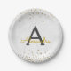 Elegantes White and Gold Foil Confetti Monogramm Pappteller