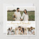 Elegantes White and Gold "Liebe und danke" Script 4 Foto Collage Wedding Dankeschön Karte. Stilvoll, modern, minimalistisch Hochzeitskarte danke Ihnen die Vorlage mit vier (4) Foto auf der Vorderseite und ein (1) Foto auf der Rückseite. Mit dem Text "Liebe und Dank" in einer Wirblen Hand Schriftzeichen Swash-Schwanz Schriftart in Gold auf weißem Hintergrund. Personalisieren Sie den individuelle Name und danken Sie Ihnen Nachricht. Wenn Sie lieber Ihre Notiz handschreiben, löschen Sie den Beispieltext, um mehr Platz zu machen. Wenn Sie Hilfe oder Match-Artikel benötigen, wenden Sie sich bitte an Designer!
