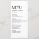 Eine elegante Karte für Ihr Hochzeitsessen. Diese schwarz-weiße Karte verfügt über eine moderne schwarze Typografie mit dem Titel Menu. Personalisieren Sie die Namen der Braut und des Bräutigams, das Hochzeitsdatum und das Menü. Der gesamte Text auf der Vorderseite ist links. Die Rückseite ist schwarz, die Initialen des Paares sind weiß, durch einen schwarzen Ampere getrennt