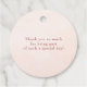 Diese schicken Brautparty-Gunst-Tags sind mit einem cremefarbenen Satin-Bogen und einem bläsernen Rosé-Prosecco-Glas ausgestattet - eine perfekte Mischung aus Eleganz und Feier. Egal, ob es sich um Mini-Champagnerflaschen, süße Leckereien oder nachdenkliche Pfannkuchen handelt, sie fügen einen stilvollen, femininen Flair hinzu, den Ihre Gäste nicht vergessen werden. Ein hübsches kleines Detail, das "Danke" auf hübsche Weise sagt!