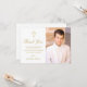 Senden Sie ein einfaches, aber elegantes Foto Dankeschön an Familie und Freunde für den Besuch Ihrer ersten heiligen Gemeinde. Dieses Design verfügt über ein Foto auf der rechten Seite, um leicht zu Ihrem eigenen und zu den links ist ein einfaches Imitat Gold Christlich Kreuz mit Ihrem Dankeschön-Nachricht in klassischen Stil Imitate Gold-Skript. Personalisieren Sie die Dankeschön-Nachricht mit Ihrer eigenen oder Verwendung, wie es ist. Auf der Rückseite der Karte befindet sich ein goldenes Kreuz mit passendem Imitat auf Weiß. Das hier war eine Freude am Design. Hoffe, dass du Spaß hast! Entworfen von Susan Coffey.
