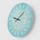 Elegantes White Gold Mandala Sky Blue Design Große Wanduhr