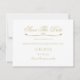 Diese elegante Hochzeitskarte Save the Date ein einfaches Imitat Goldskripttypografie-Design auf einem weißen Hintergrund, der von einem Herzen geblüht wird. Personalisieren Sie mit Ihren Namen, Datum und Ort/Staat. Koordiniert mit unserer eleganten White & Gold Monogram Hochzeitssuite, entworfen von der Künstlerin Susan Coffey.