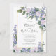 Ehre eine besondere Frau mit dieser eleganten und femininen Party Einladung der Pensionierung. Die Details der Pension sind von einem schicken goldenen Rahmen umgeben, der mit weißen Rosen und blauen Blumen geschmückt ist. Die Blumenelemente sind in tiefgrüne Blätter eingebettet. Während es sich um ein traditionelles Design handelt, verleihen das offene und luftige botanische Blattwerk und der Text ihm ein zeitgenössisches Ambiente. Die Einladung zurück ist ein kaum dort tiefblau.