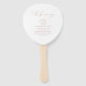 Diese eleganten personalisierten Hochzeitshandventilatoren verfügen über ein Imitat Rose Gold Kalligraphie Skript Typografie Design auf einem einfachen weißen Hintergrund. Personalisieren Sie mit den Braut- und Bräutigamen und dem Hochzeitstag auf der Vorderseite und den Details Ihrer Zeremonie auf der Rückseite. Entworfen von Susan Coffey.