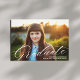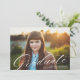 Diese Abschluss-Ankündigung verfügt über ein Foto in voller Rahmen und elegante Kalligraphie "Graduate" in Weiß. Dieses klassische und dennoch moderne Design erlaubt es Ihrem Foto, durch den minimalen behalt der Details zu glänzen, während der Gruß Set den fröhlichen Ton. Tipp: Sie können einfach mehr Text oder ein zusätzliches Foto auf der Rückseite hinzufügen, indem Sie den optionalen Musterbacker entfernen.