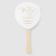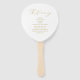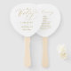 Diese eleganten Hochzeitshandventilatoren sind mit einem goldenen Typografie-Design aus Imitat auf weißem Hintergrund ausgestattet. Personalisieren Sie mit den Braut- und Bräutigamen und dem Hochzeitstag auf der Vorderseite und den Details Ihrer Zeremonie auf der Rückseite. Entworfen von Susan Coffey.