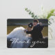 Eleganter White Script Schriftart Hochzeit Foto Danke Karte. Passen Sie es mit Ihrer Lieblings-Hochzeitskarte an. Es enthält eine Dankeschön-Nachricht auf der Rückseite der Karte, die Sie nach Belieben ändern können.