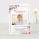 Dieses elegante Gedenkprogramm besticht durch hübsche Aquarellfarben-Blume, die das Foto Ihrer Lieben umrahmen. Im Inneren befinden sich zwei zusätzliche Fotos neben dem Nachruf, die Reihenfolge der Dienstleistung, Arrangementtext, Bestätigungen und Informationen zum Empfang der Beerdigung auf Wunsch. Dieses Programm kann weiter personalisiert werden, indem Sie auf den Link "Design bearbeiten" am unteren Rand des Personalisierungsfelds klicken, falls gewünscht.